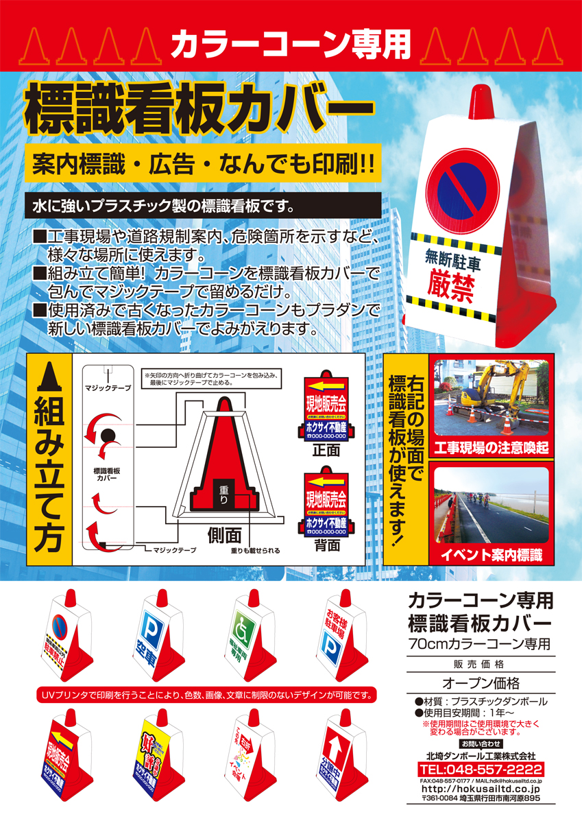 当社製のカラーコーン用標識看板をご利用頂きました。