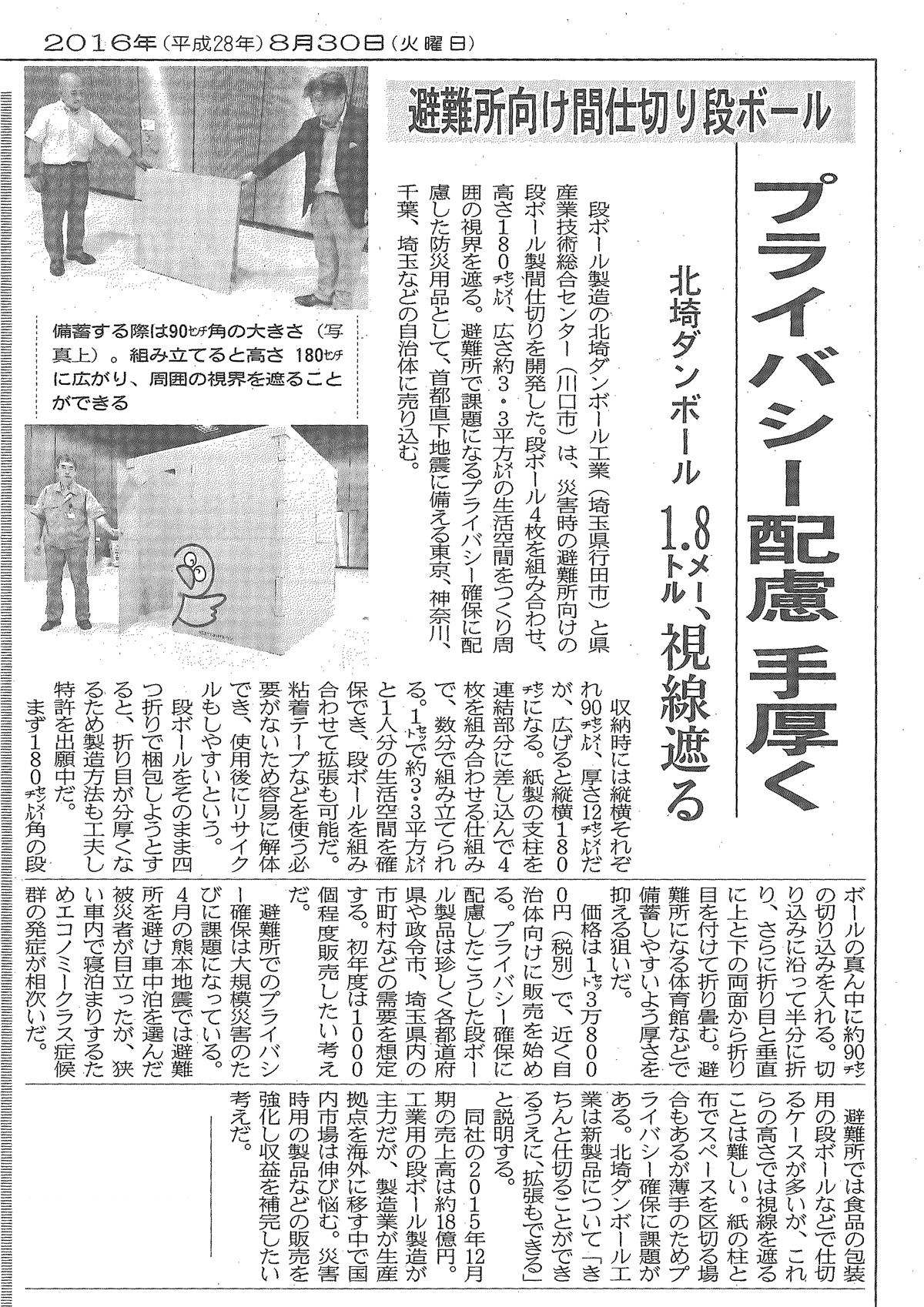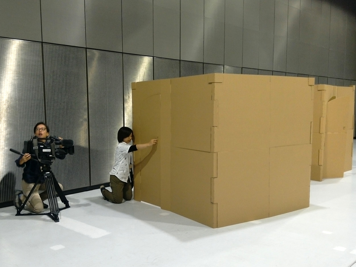 共同通信社様より取材を受けました。本日、共同通信社様より、防災用ダンボール製パーティションの取材をお受けいたしました。