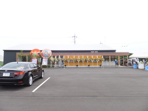 オープン前の店舗前からの写真になります。とても広い駐車場で大型車も駐車できます。