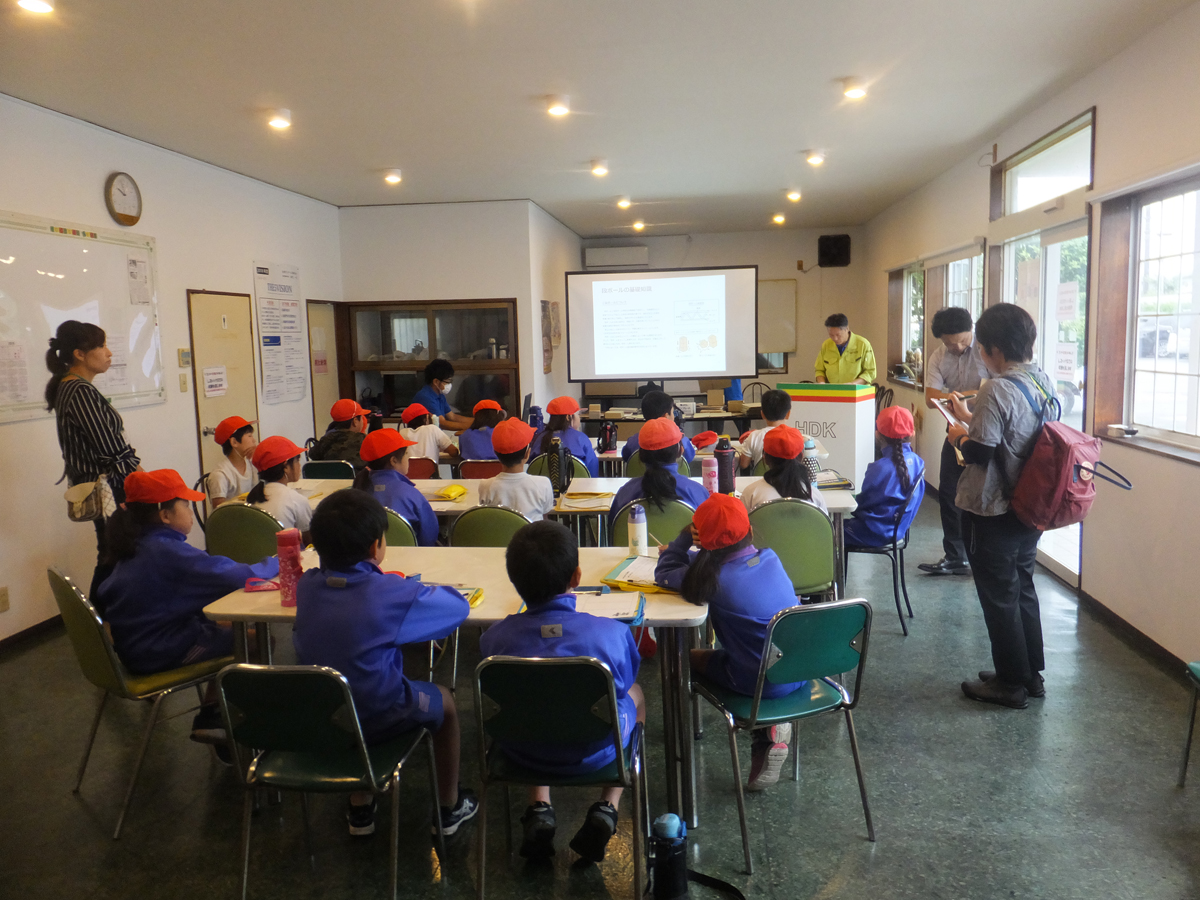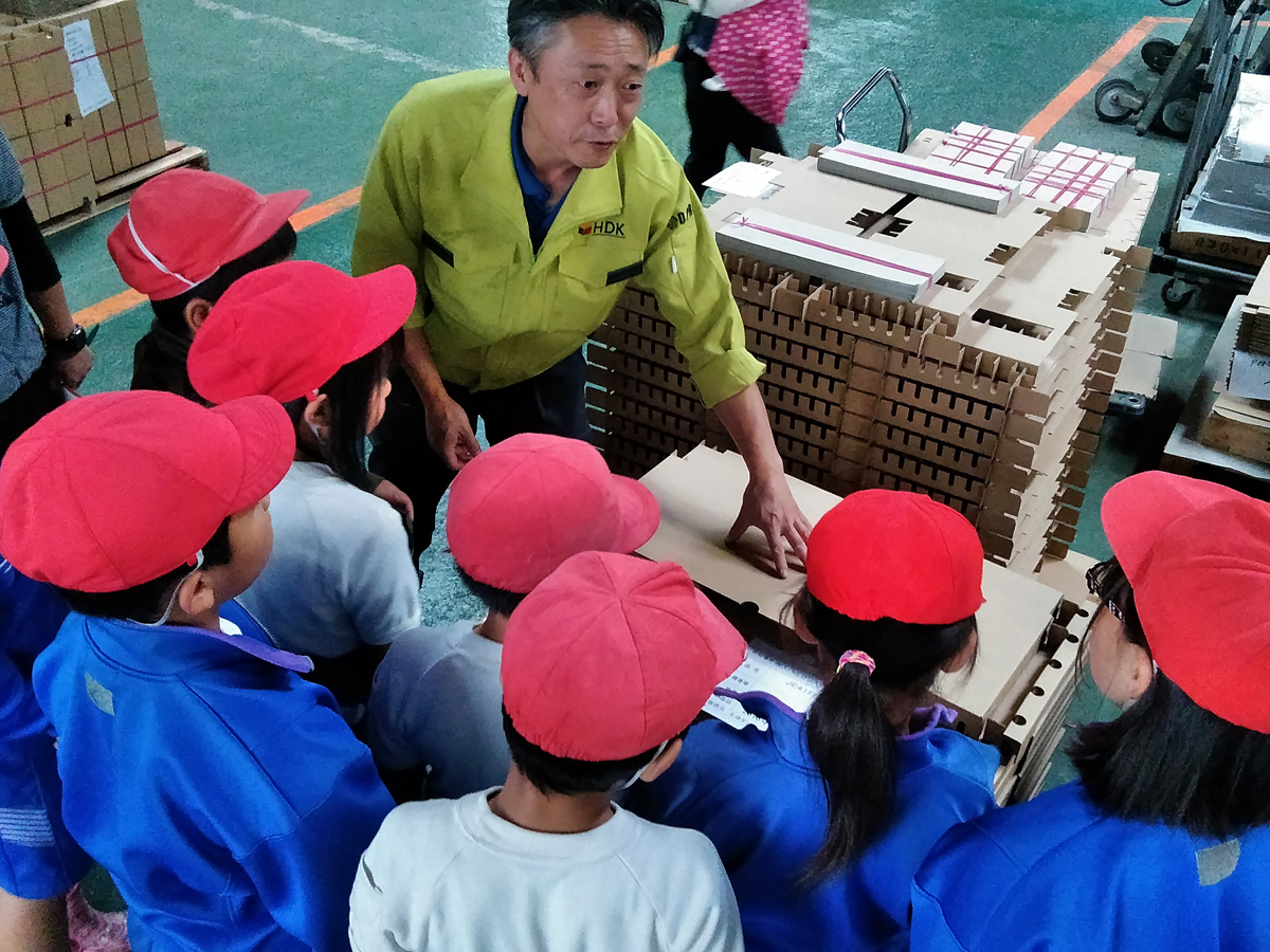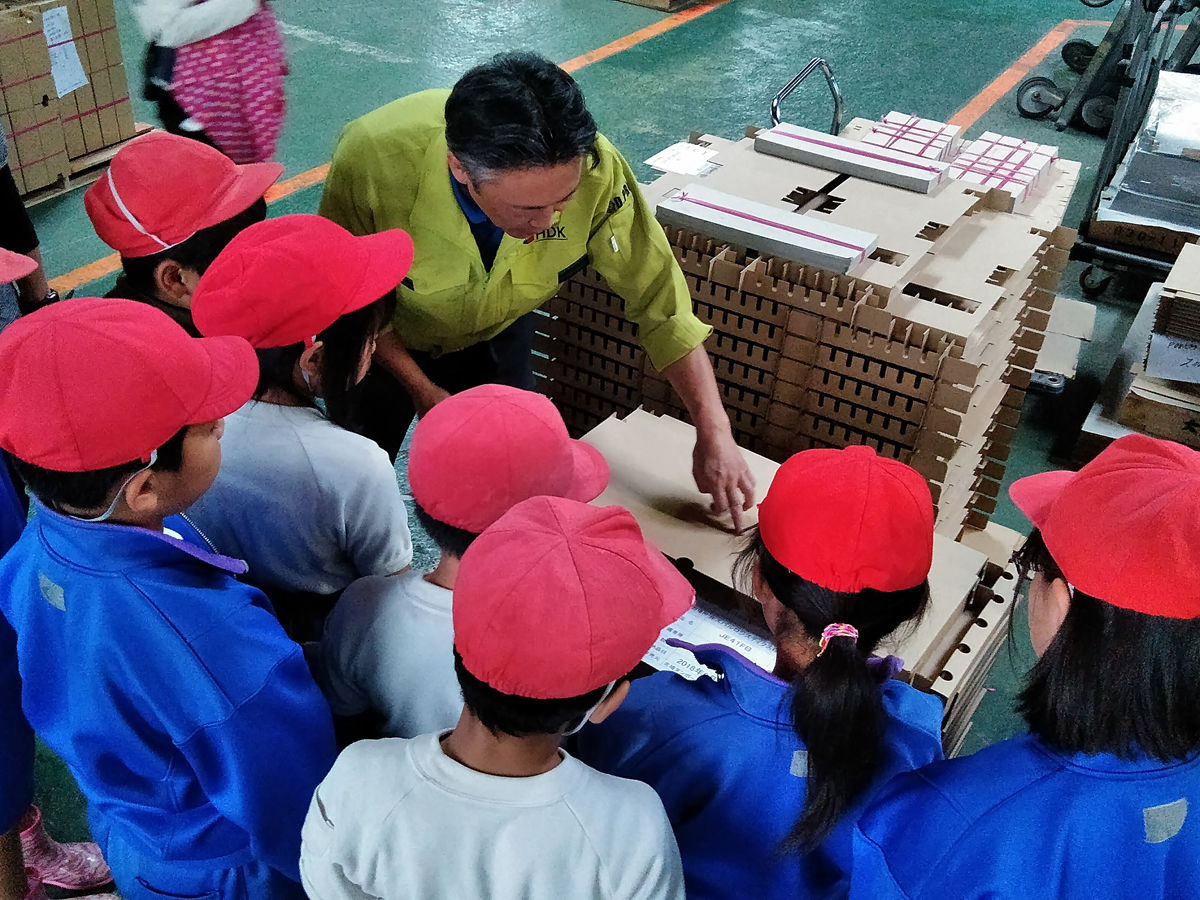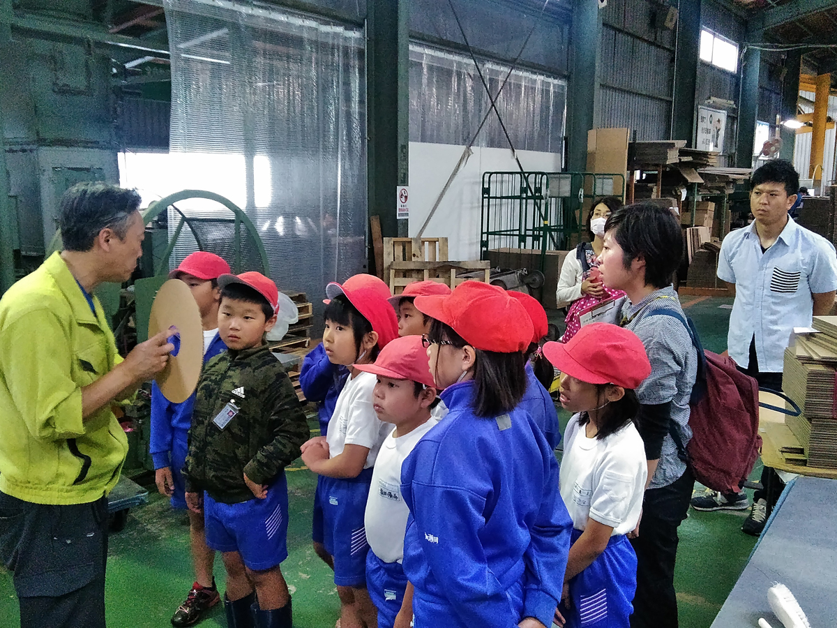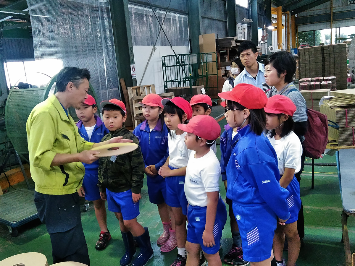 段ボール製品・プラスチック段ボール製品・什器・商品ディスプレイの設計・製造・販売のことなら北埼ダンボール工業株式会社まで行田市立南河原小学校の3年生18名が当社に社会科見学!6月15日(金)今年も元気に社会科見学に来てくれました。