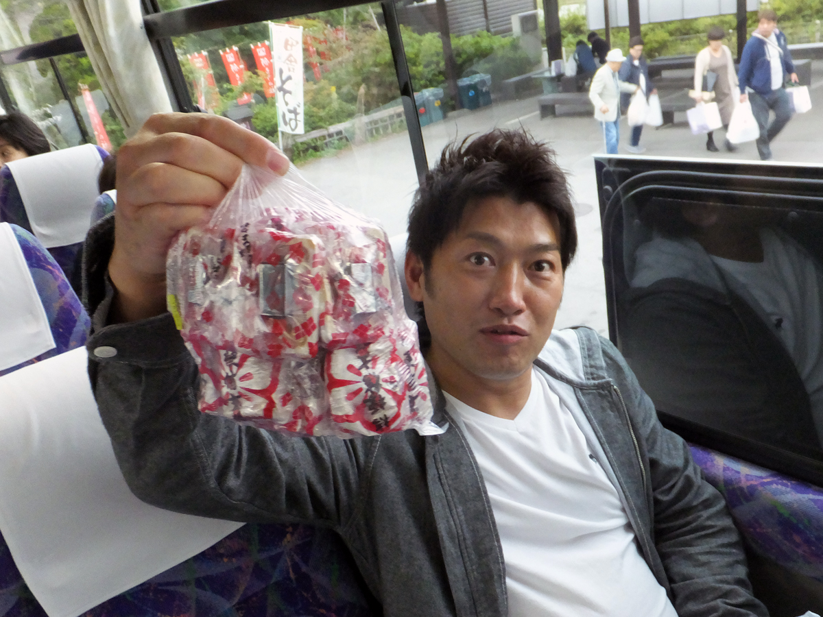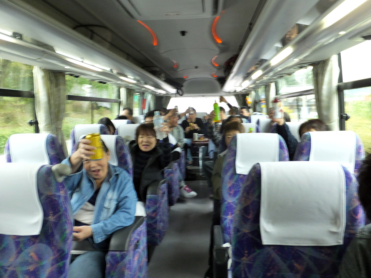 早速、バスの中でカンパーイ!!